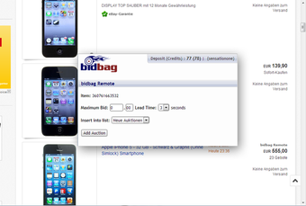 "Bidbag Auction Bid Sniper for eBay", eBay üzerindeki açık artırmaları yönetmek için tasarlanmış bir tarayıcı eklentisidir. Bu araç, son saniyelerde teklif verme imkanı sunarak, kullanıcıların açık artırmalarda daha yüksek başarı ile kazanç sağlamasına yardımcı olur. Yüksek hızlı bağlantı ile çalışan sunucu kümeleri, kesintisiz hizmet ve güvenilirlik sağlar. Ayrıca, teklif izleme, anlık bildirimler ve diğer gerçek zamanlı özellikler ile kullanıcı deneyimini geliştirir.